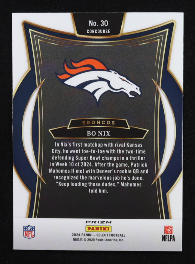 Bo Nix 2024 Select Prizm Red and Blue Shock #30 RC