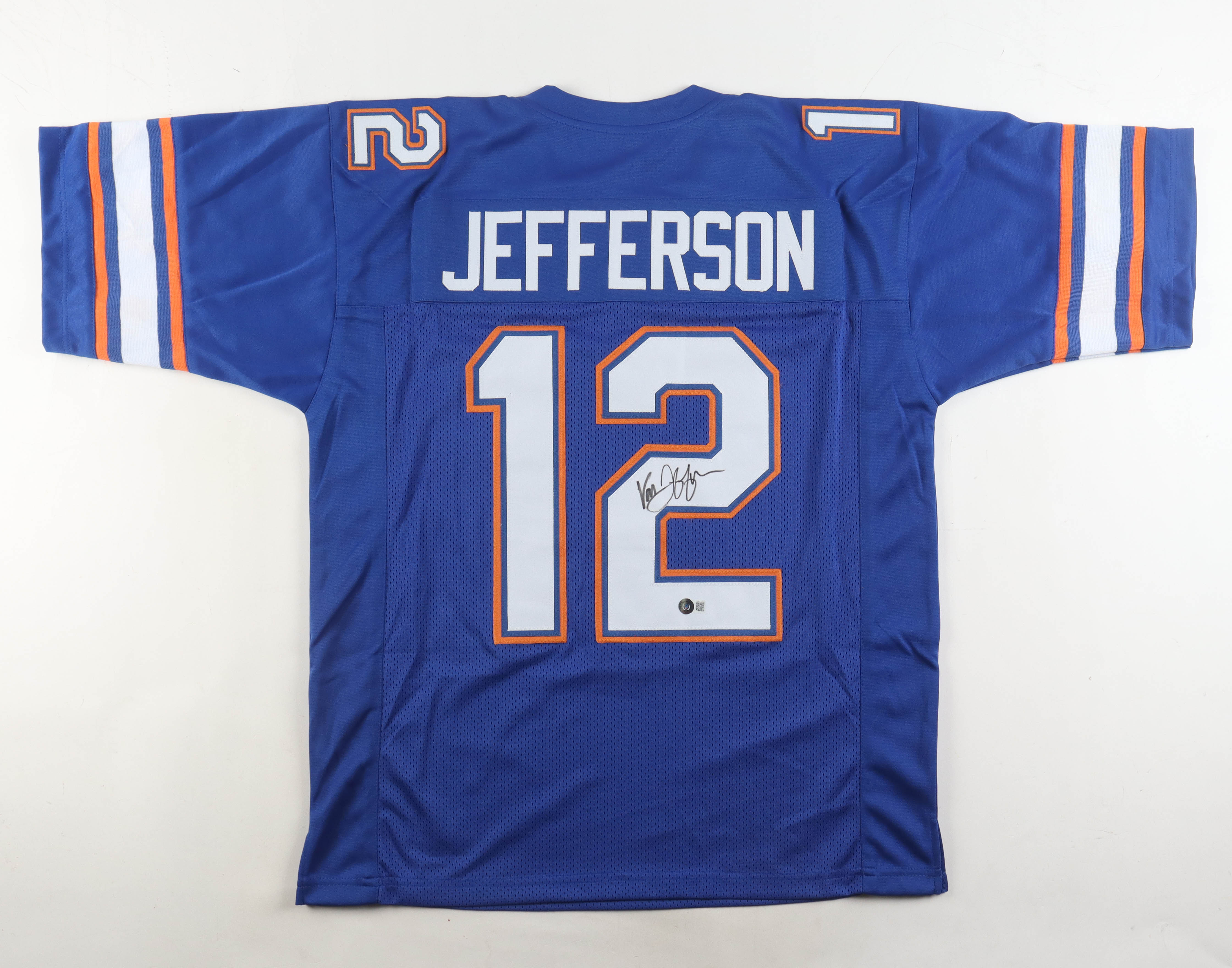 Custom jersey with everything sewn on, size XL. Hand-signed by Van Jefferson.