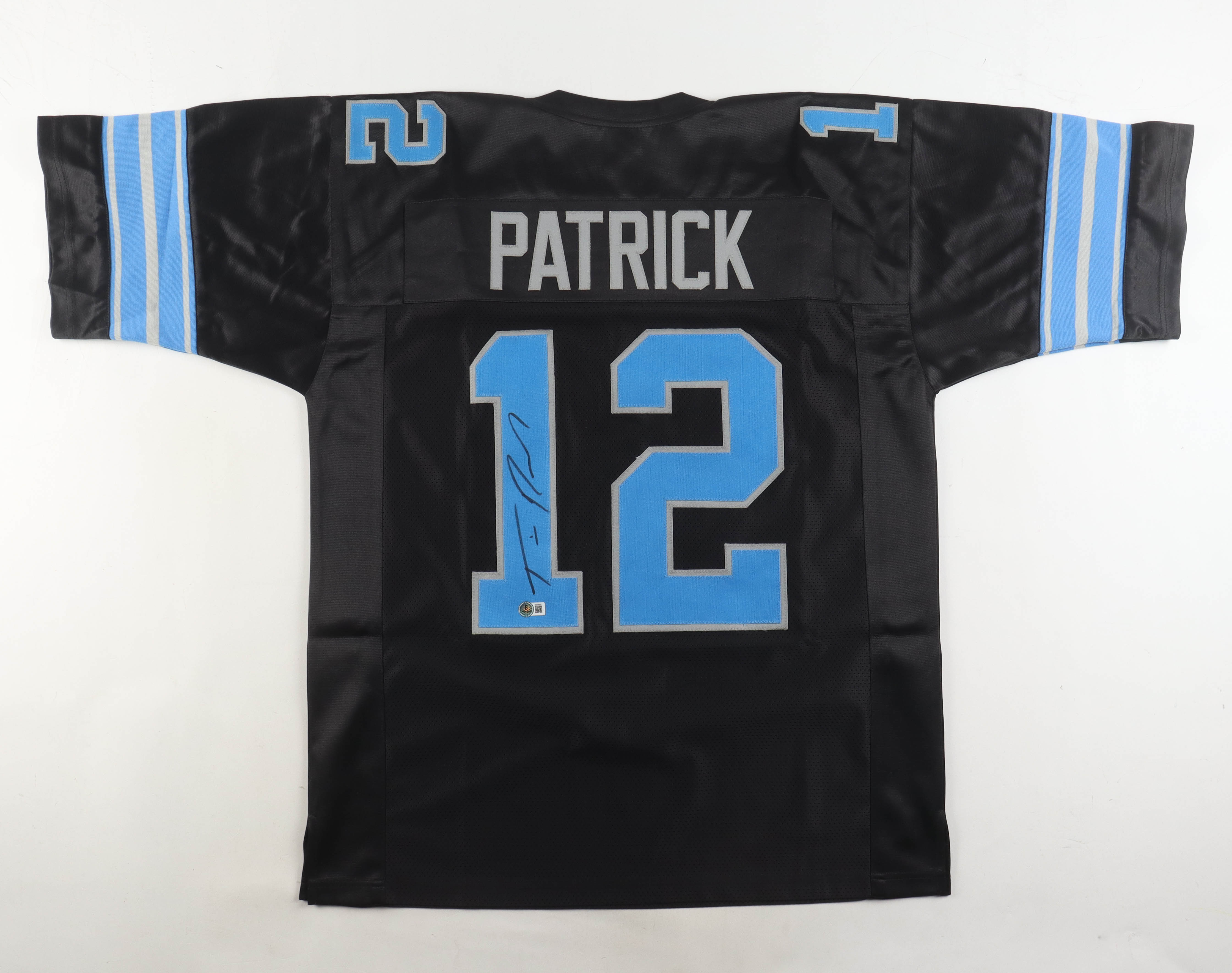Custom jersey with everything sewn on, size XL. Hand-signed by Tim Patrick.