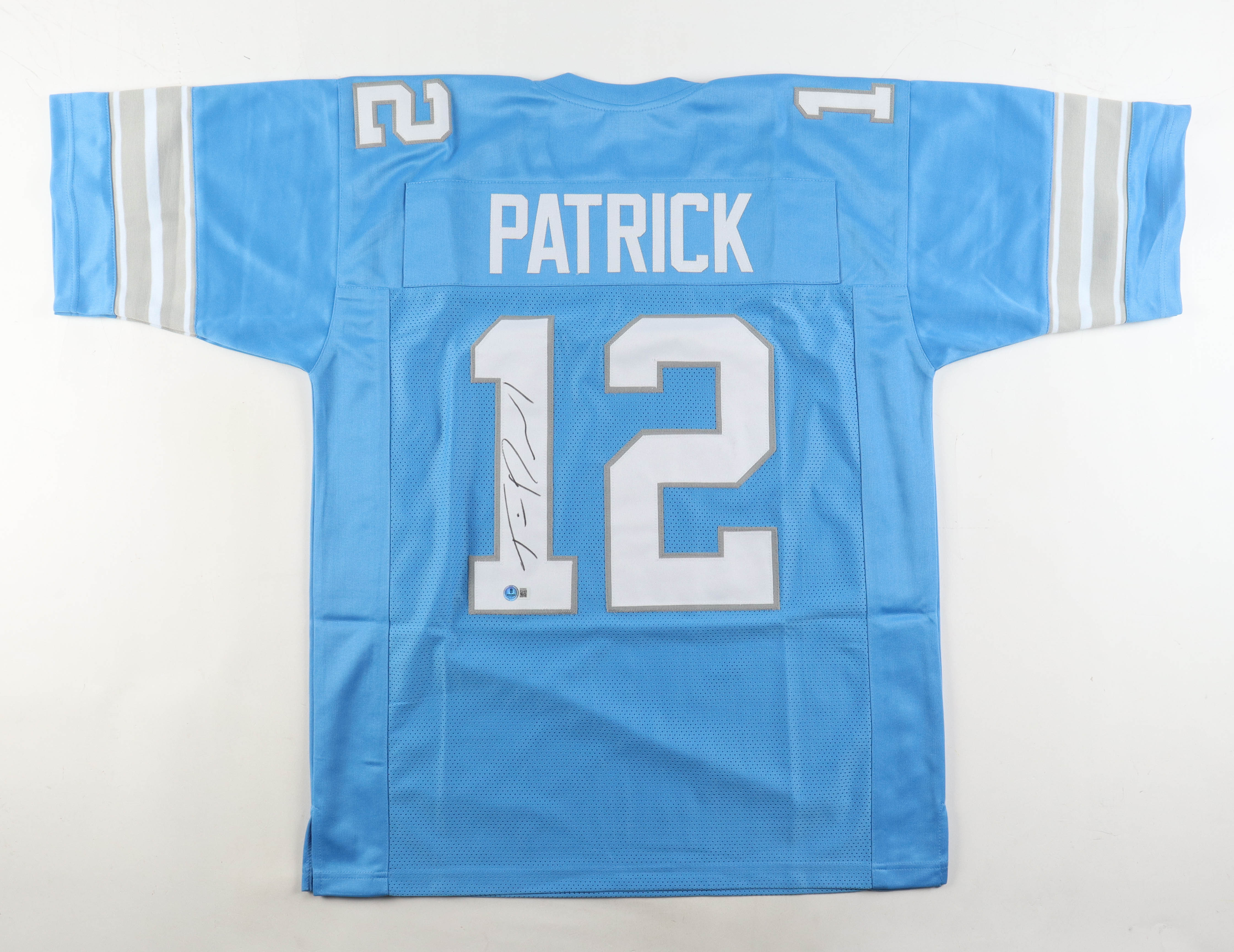 Custom jersey with everything sewn on, size XL. Hand-signed by Tim Patrick.