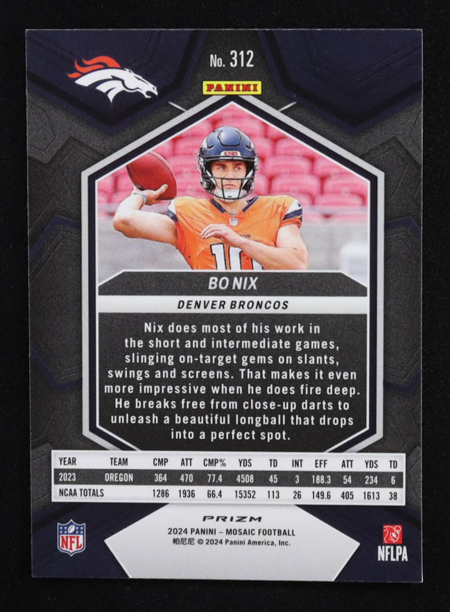 Bo Nix 2024 Panini Mosaic Silver #312 RC