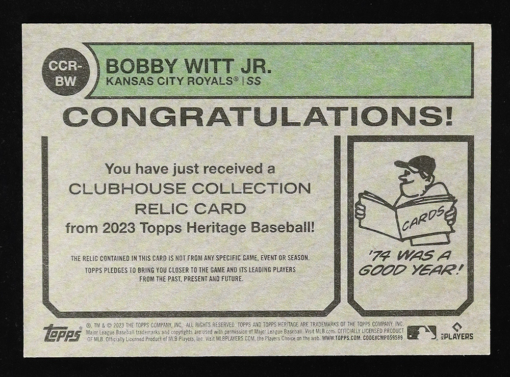 Bobby Witt Jr. 2023 Topps Heritage Clubhouse Collection Relics #CCRBW