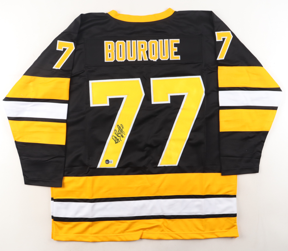 Custom jersey. Everything is sewn on, size XL. Hand-signed by Ray Bourque (HOF).