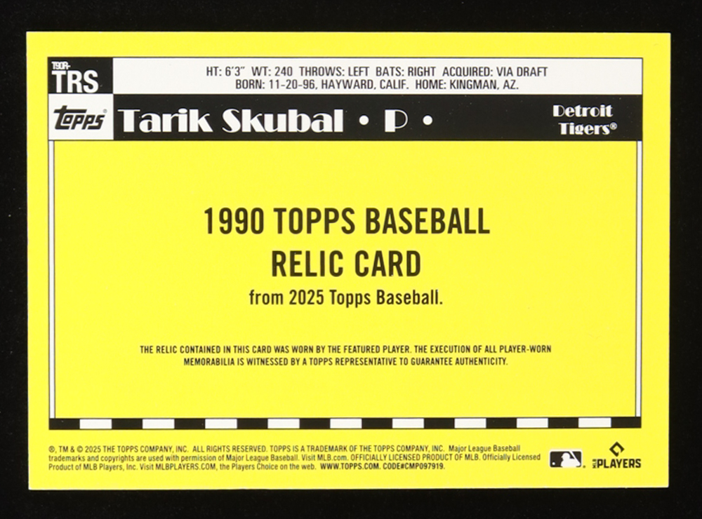 Tarik Skubal 2025 Topps '90 Topps Relics #T90RTRS