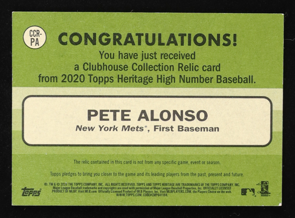Pete Alonso 2020 Topps Heritage Clubhouse Collection Relics HN #CCRPA