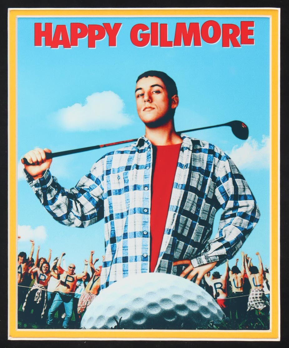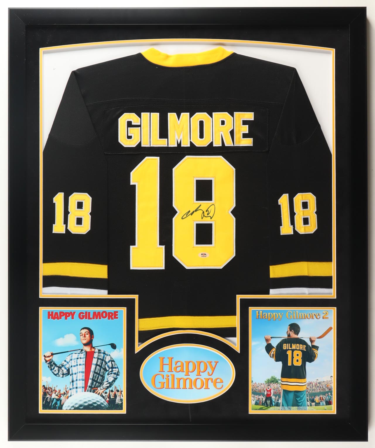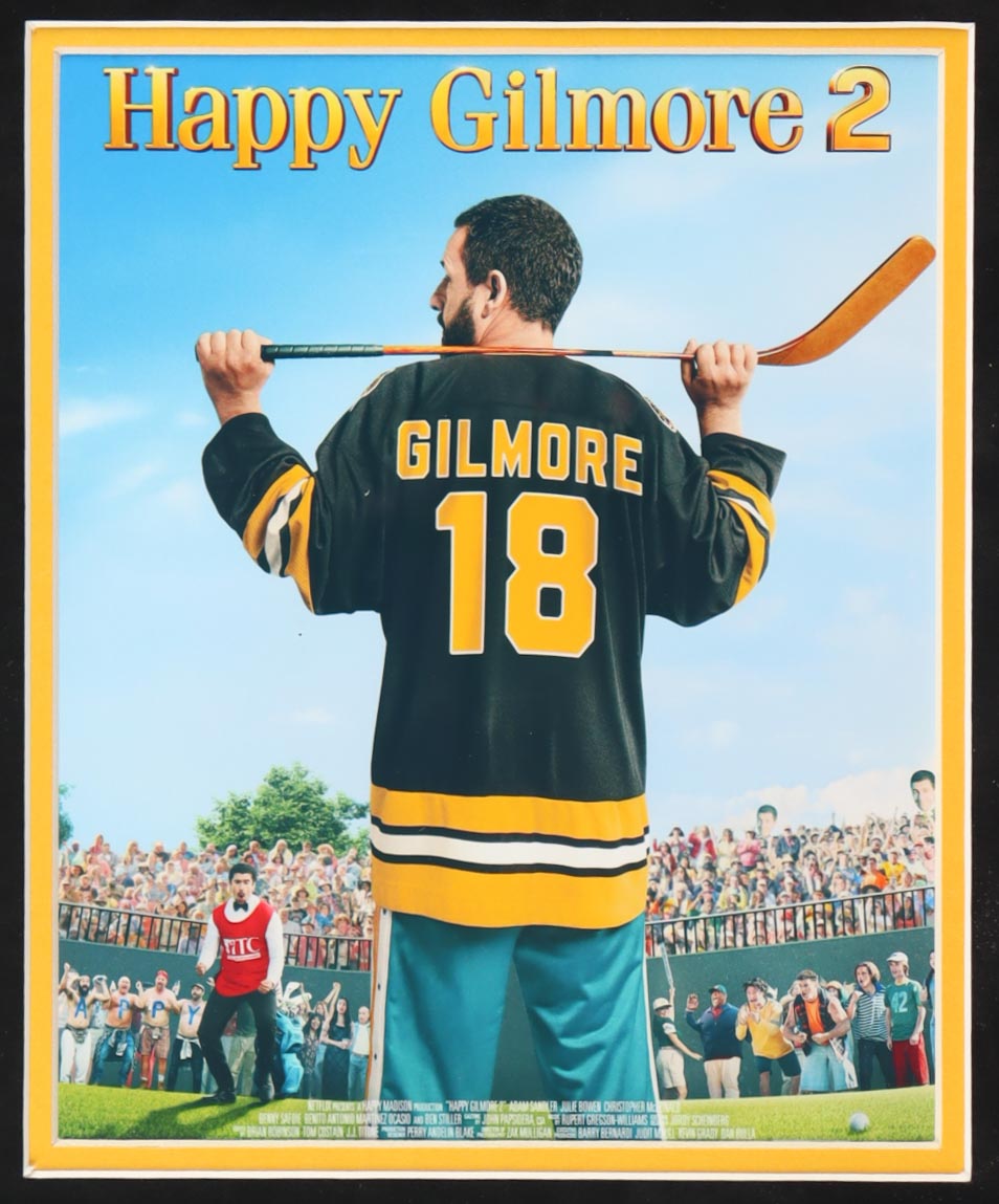 Custom frame measures approximately 32.5" x 39.5" in size and features a jersey that has been hand-signed by Adam Sandler (Happy Gilmore). Display also includes (2) 8" x 10" photos.