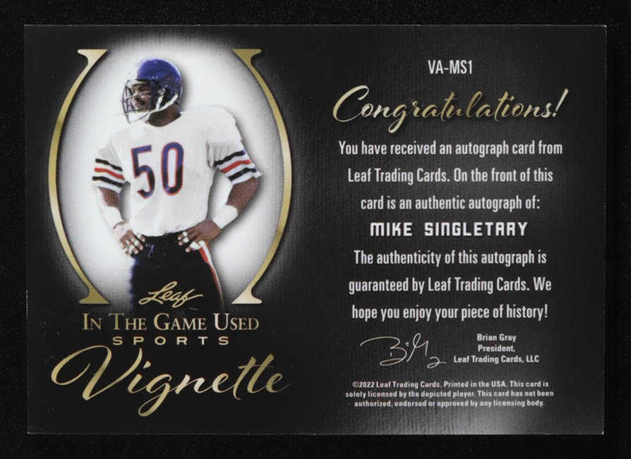 Mike Singletary 2022 ITG Used Sports Vignette Autographs Black Spectrum #VMS1 #23/25