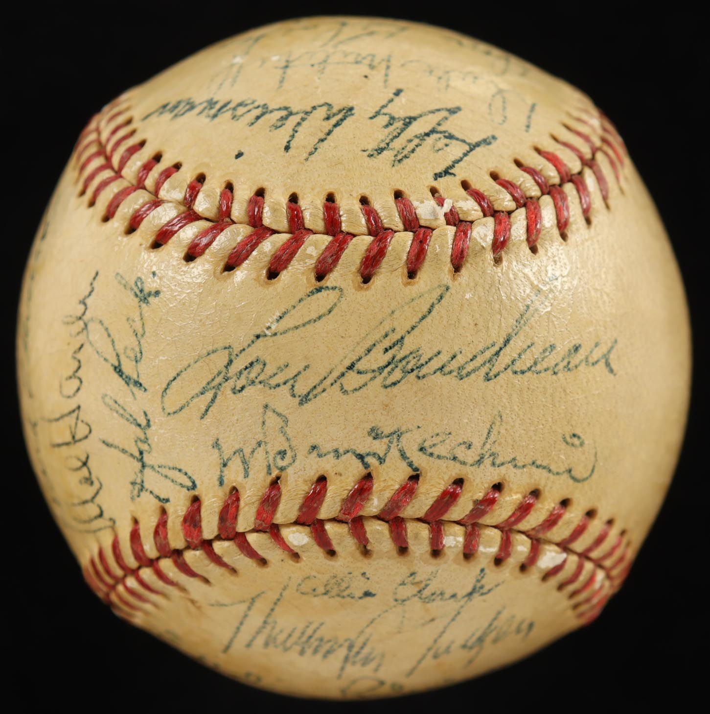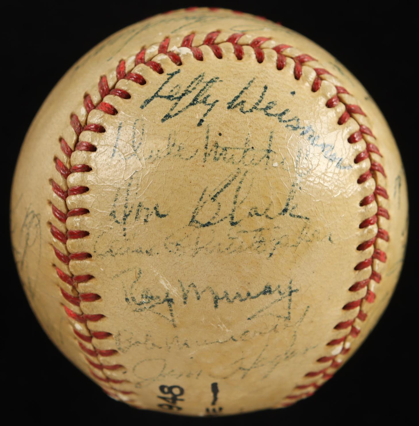 (4) other signatures are included as well. Please note, the ball is naturally toned and stained throughout, and has faded and shows signs of age and wear. See photos for more detail regarding the condition of the item.