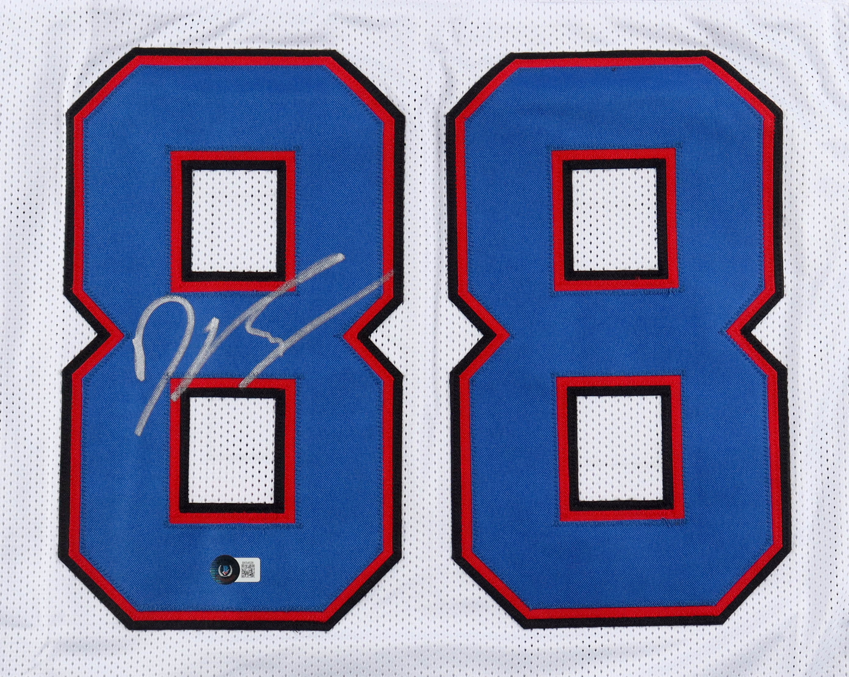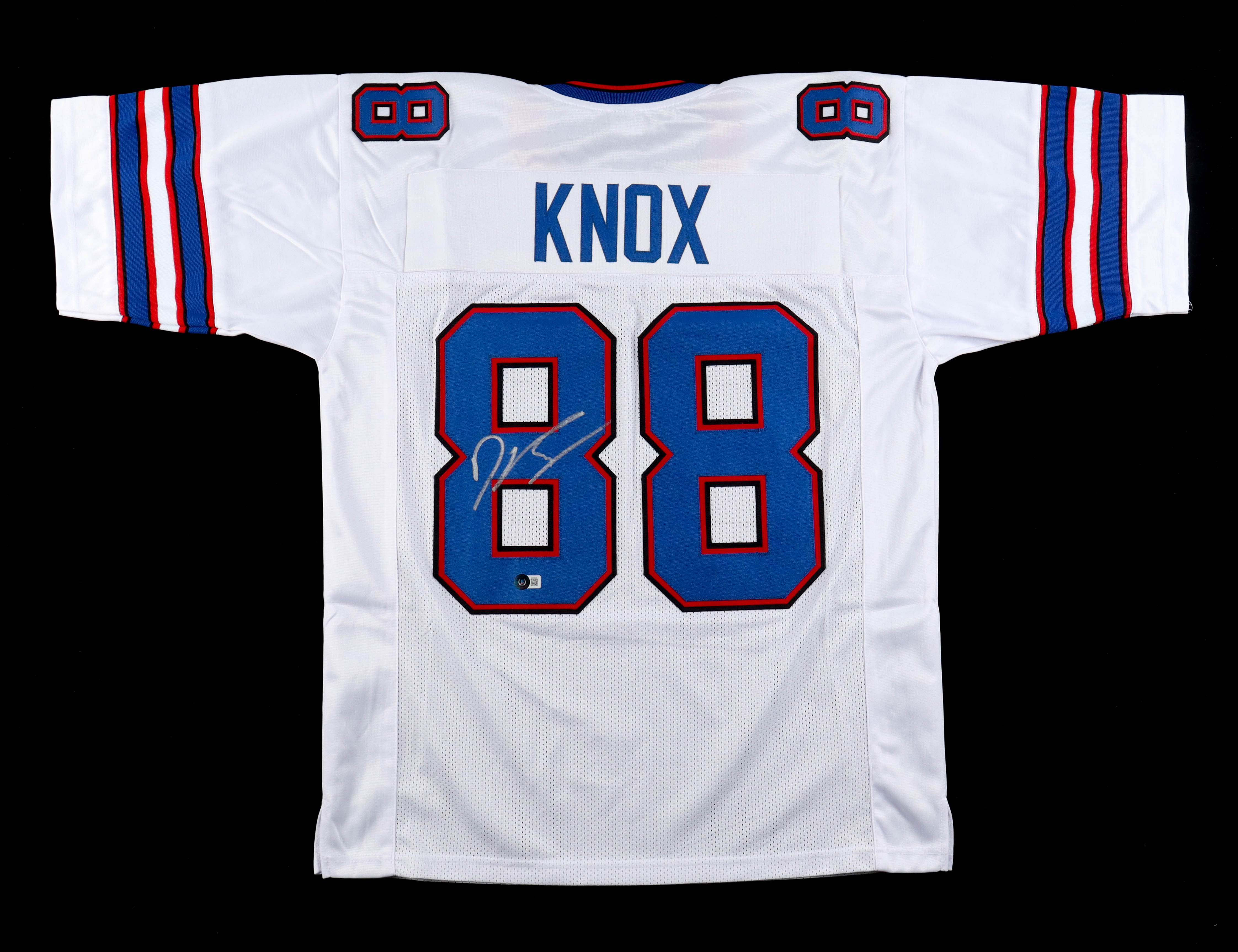 Custom jersey with everything sewn on, size XL. Hand-signed by Dawson Knox.