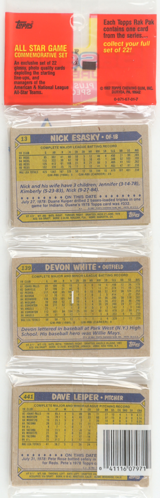 1987 Topps Baseball Picture Cards Rack Pack with (49) Cards