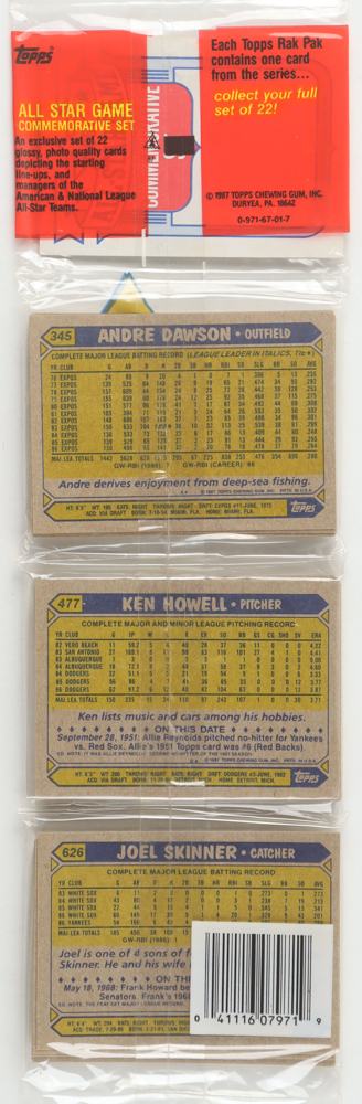 1987 Topps Baseball Picture Cards Rack Pack with (49) Cards