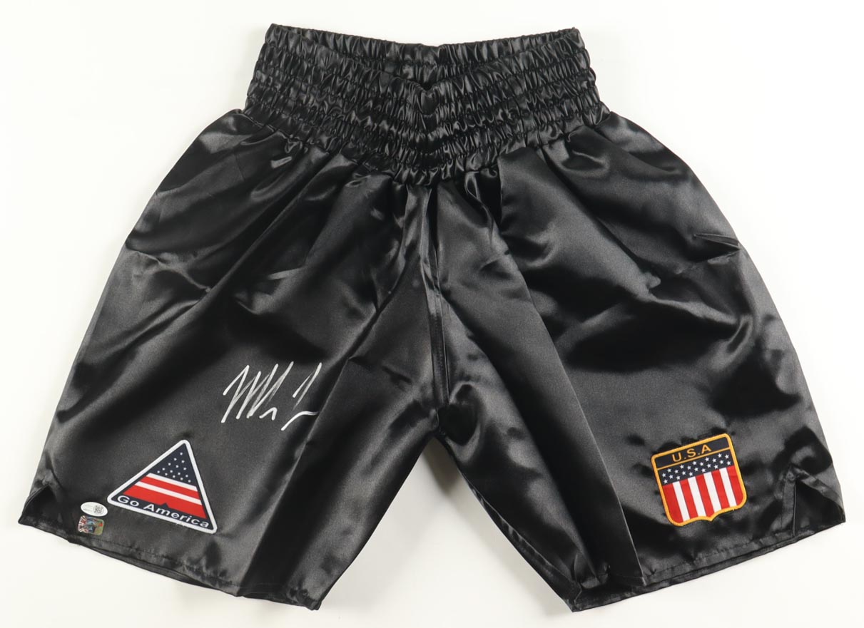 Custom boxing shorts. Size XL. Hand-signed by Mike Tyson (HOF).