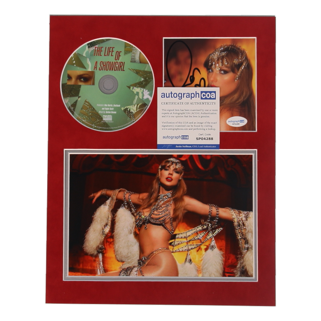 Custom matted display measures approximately 11" x 14" in size. Features a "The Life of a Showgirl" CD insert that has been hand-signed by Taylor Swift. The disc is included as shown.