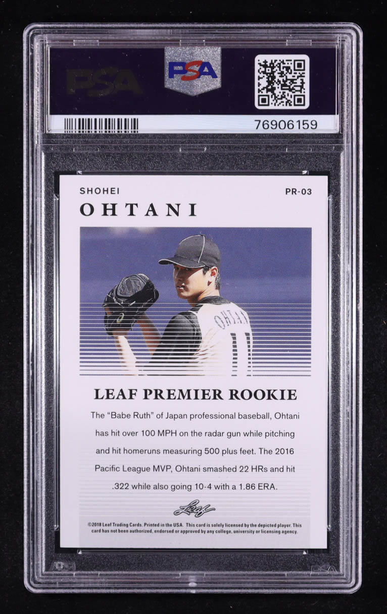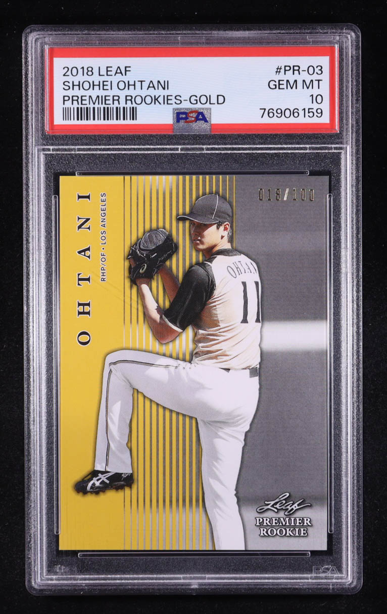 Shohei Ohtani 2018 Leaf Premier Rookies Gold #PR03 RC #018/100 (PSA 10)