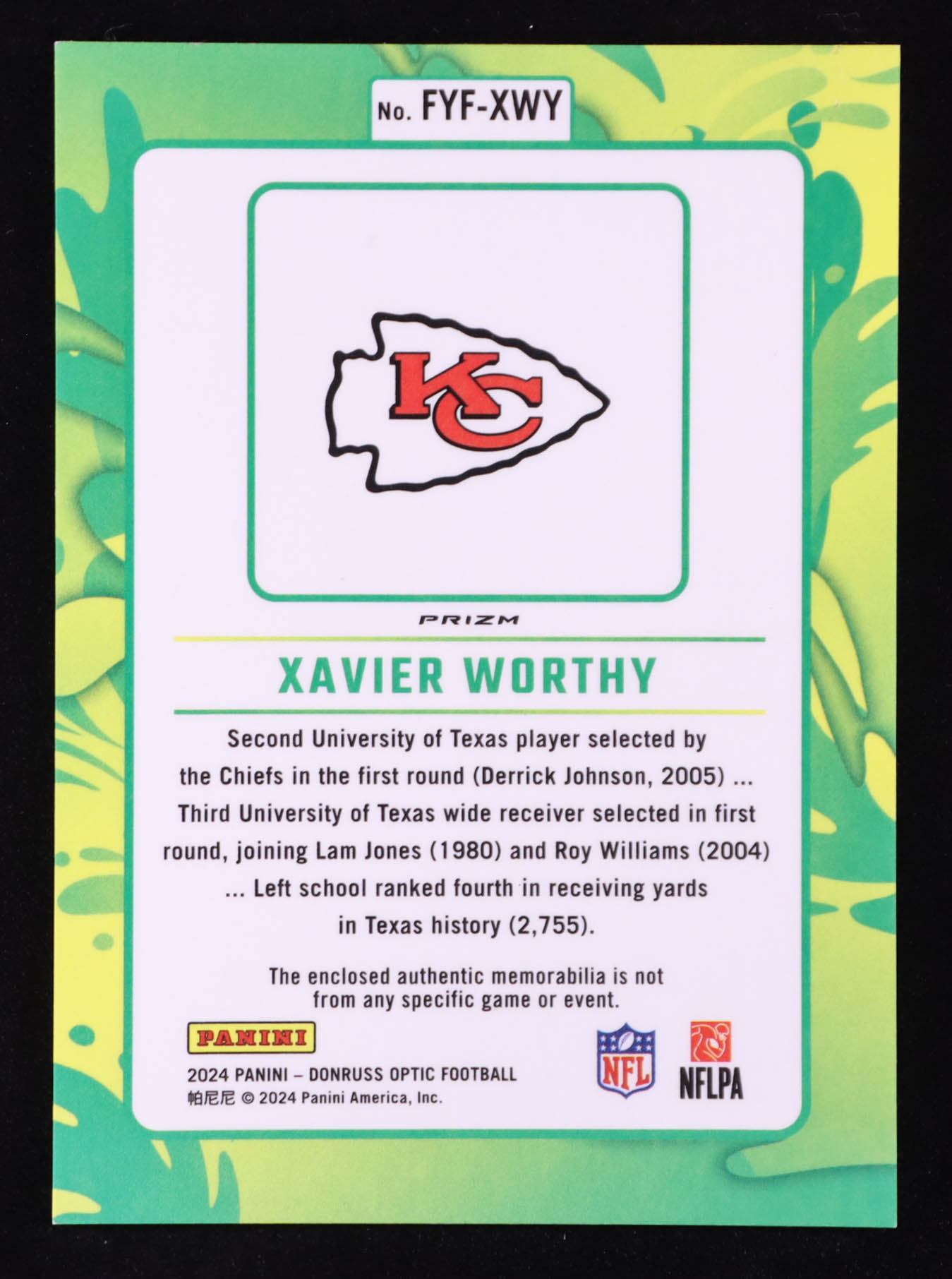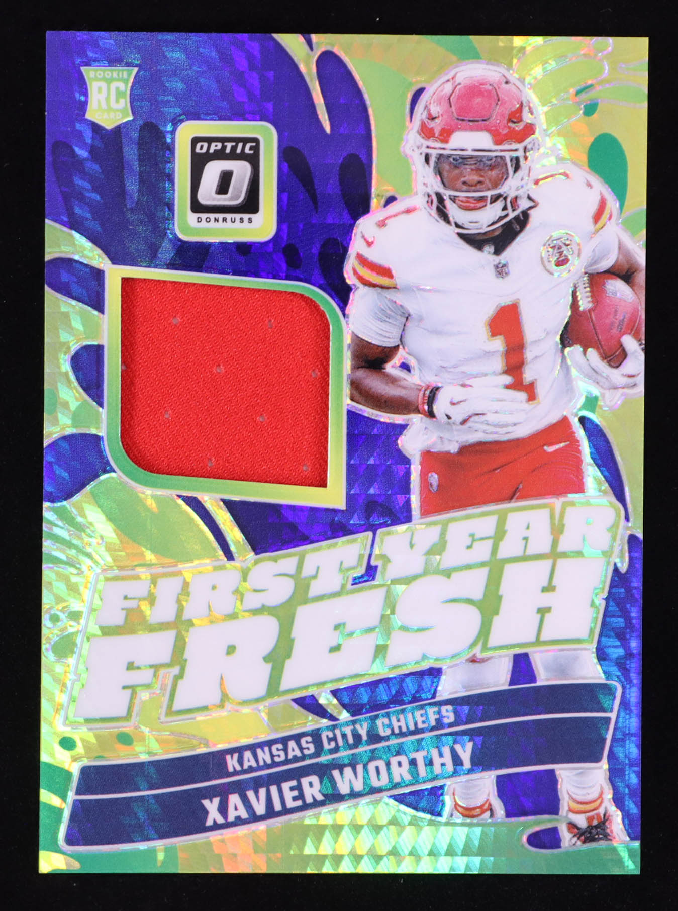 Xavier Worthy 2024 Donruss Optic First Year Fresh Jerseys Blue Hyper #42 RC
