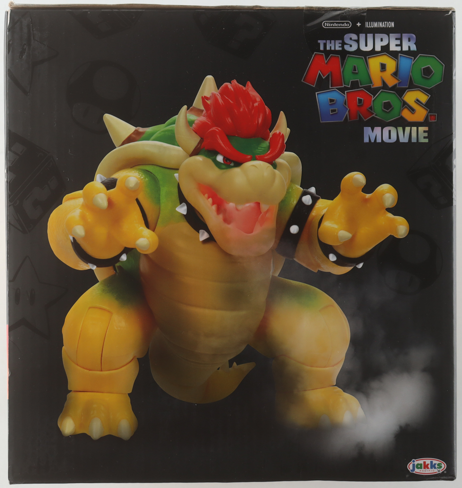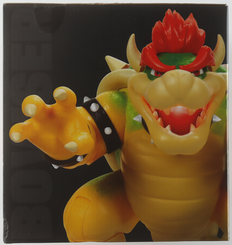 Bowser action figure measures approximately 7.5" in height. Hand-signed on the packaging by Jack Black (voice of Bowser).