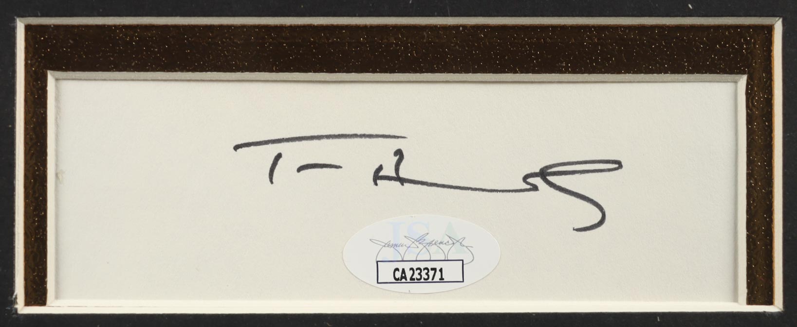 Custom frame measures approximately 23" x 31" in size and features a cut that has been hand-signed by Tom Hanks (Forrest Gump). The display also includes an unsigned jersey.