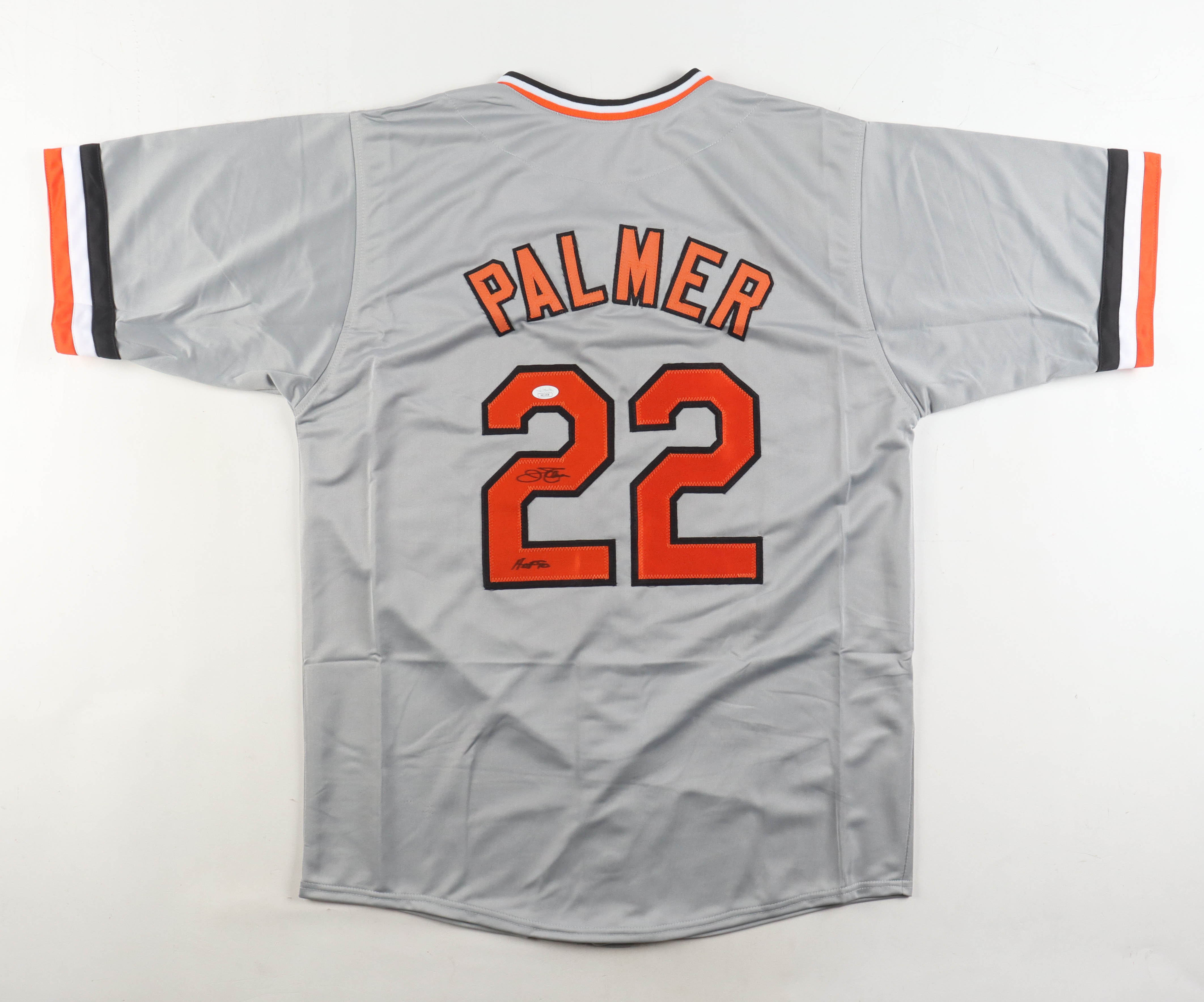Custom jersey with everything sewn on, size XL. Hand-signed and inscribed by Jim Palmer (HOF).