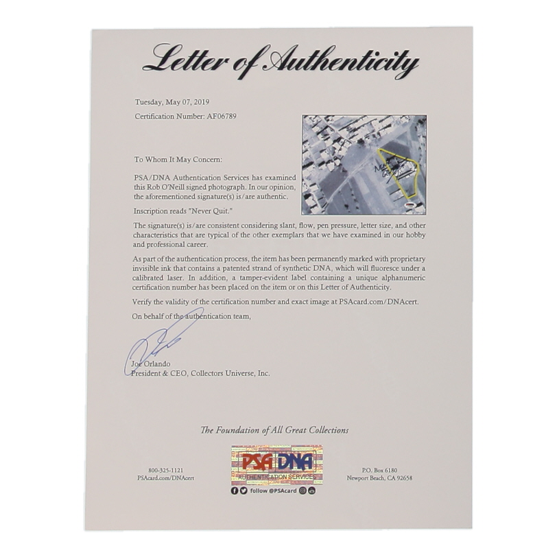 Robert O'Neill Signed 8x10 Photo Bin Laden Raid "The Operator" Inscribed "Never Quit" (PSA)
