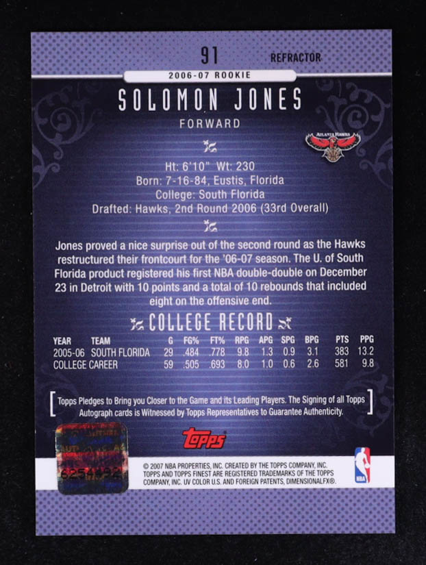 Solomon Jones 2006-07 Finest Rookie Autographs Refractors #91 RC