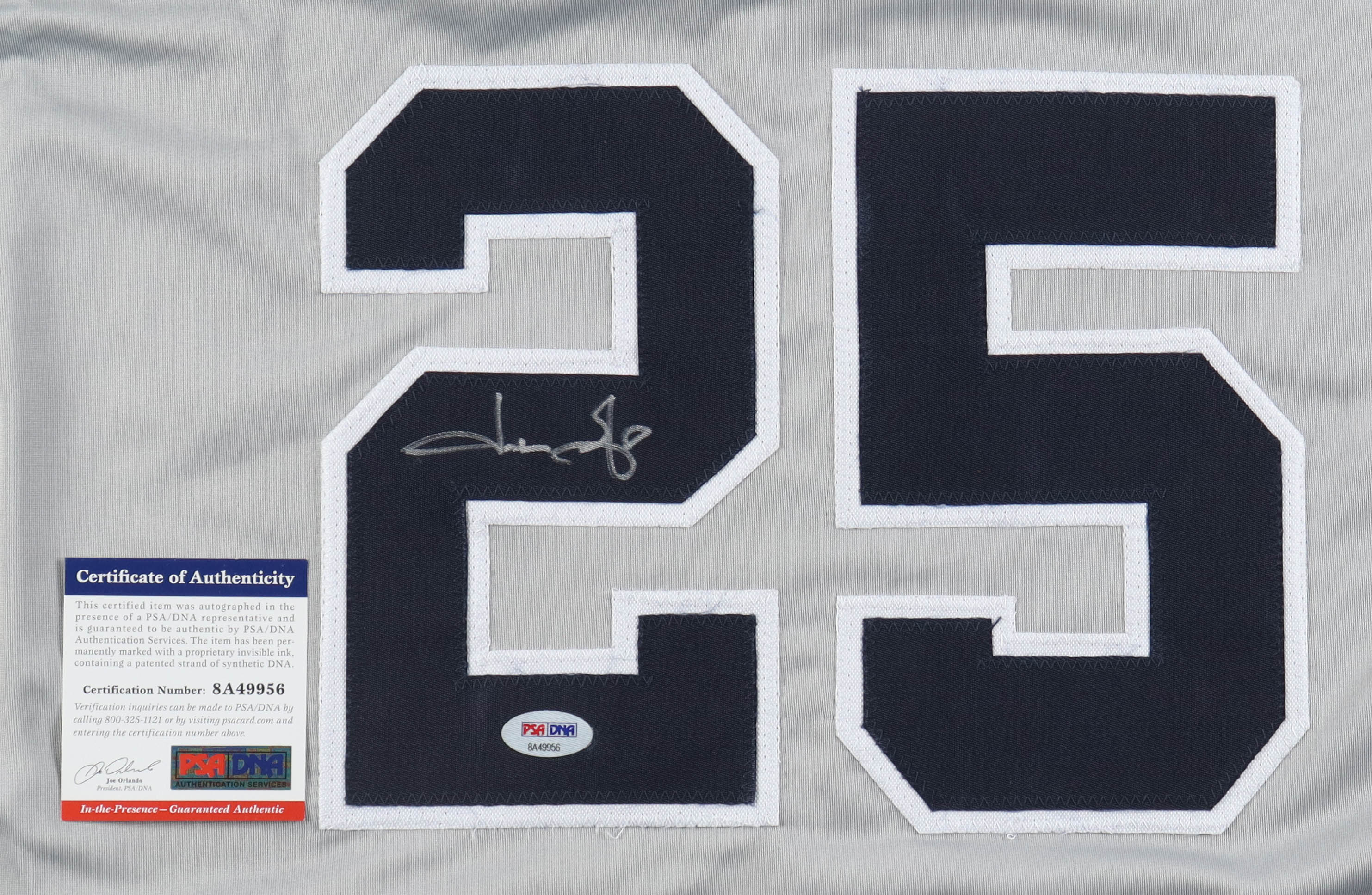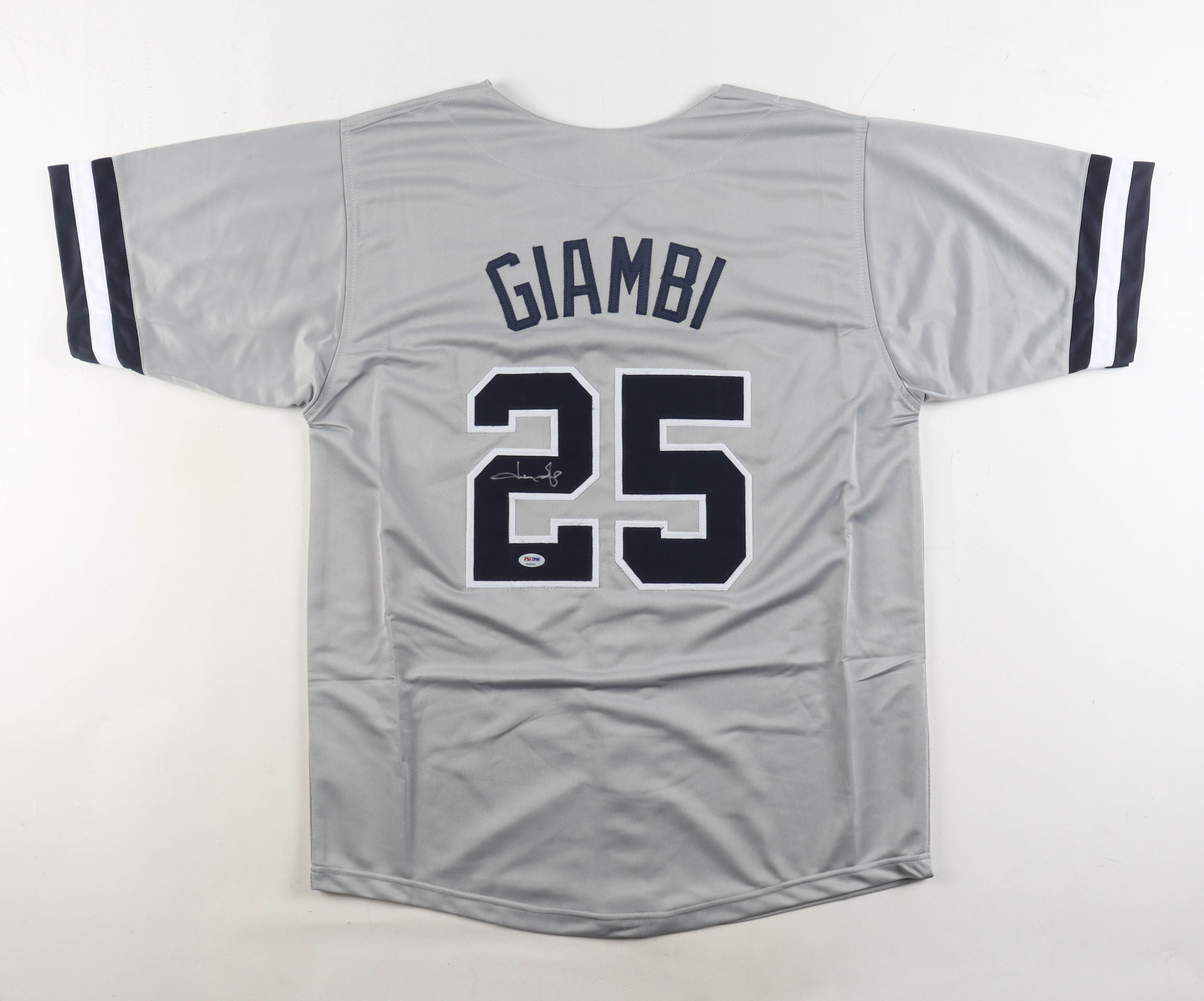 Custom jersey with everything sewn on, size XL. Hand-signed by Jason Giambi.