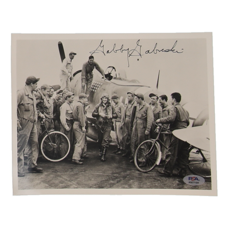 Presenting an exceptional 8x10 photograph, personally hand-signed by World War II American Fighter Ace, **Francis ""Gabby"" Gabreski**. Gabreski served with distinction in the 56th Fighter Group, achieving an extraordinary 34 1/2 aerial victories, making him one of the top American aces of the war. This photograph, signed by Gabreski himself, is a remarkable artifact, capturing the legacy of a true American hero.