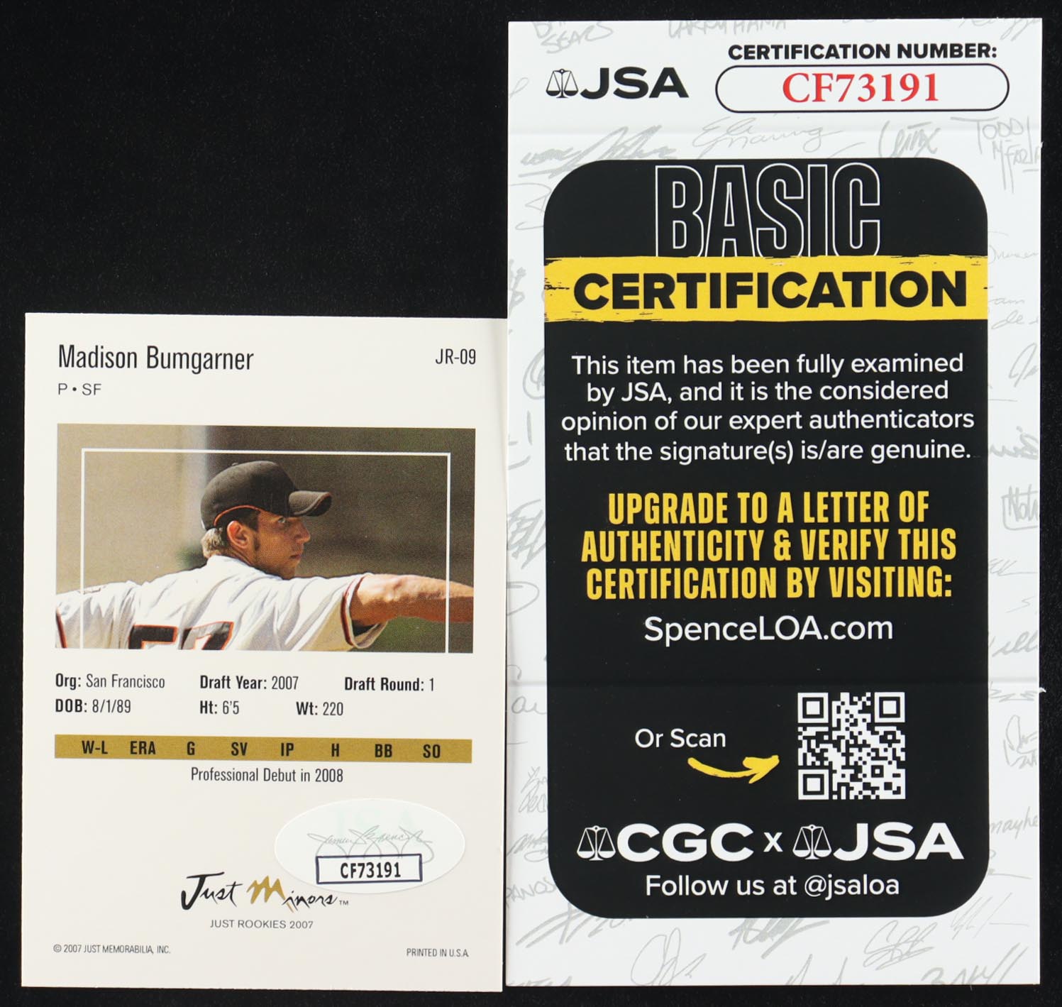 Madison Bumgarner Signed 2007 Just Rookies #9 RC (JSA)