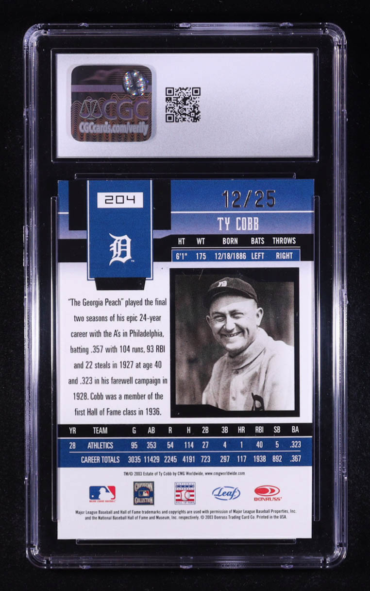 Ty Cobb 2003 Leaf Certified Materials Mirror Gold RET #204 #12/25 (CGC 9)
