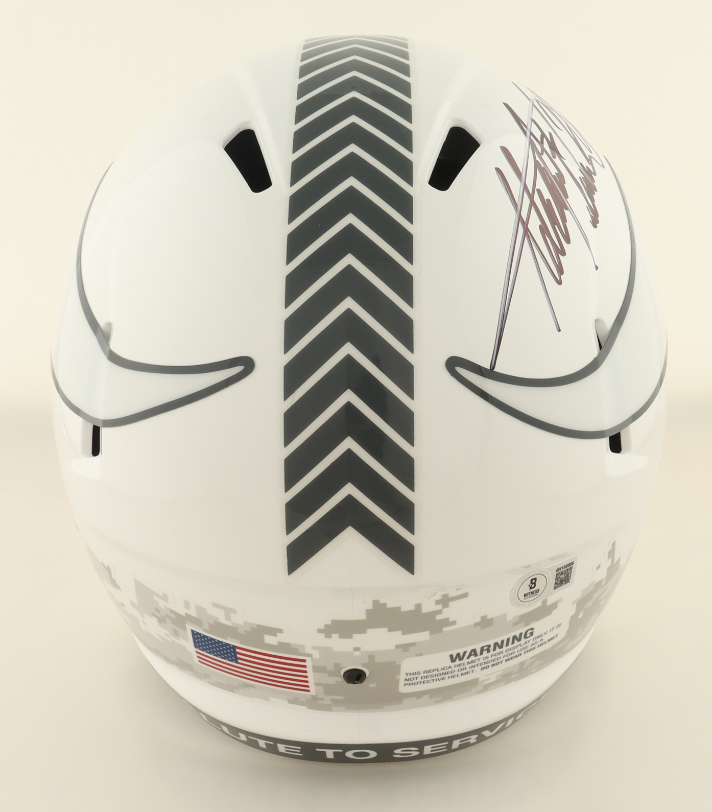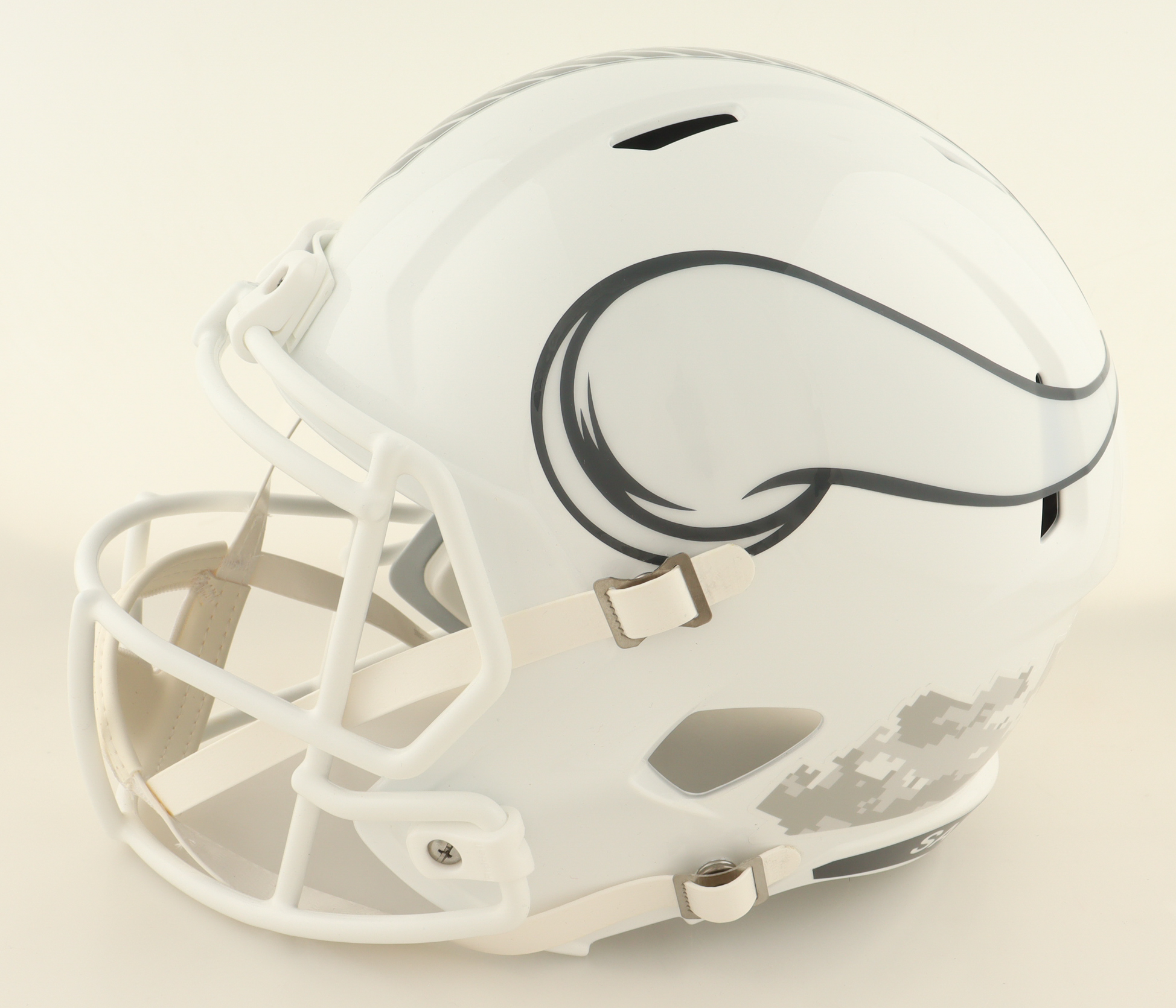 Riddell Minnesota Vikings full-size replica Salute To Service Alternate Speed helmet. Hand-signed by Adrian Peterson.