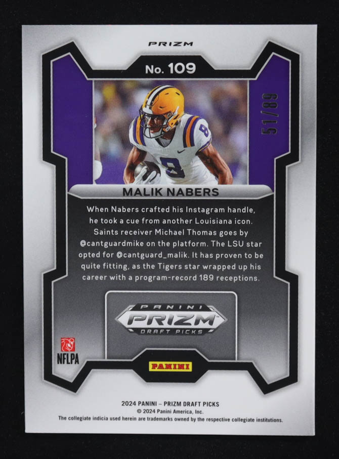 Malik Nabers 2024 Panini Prizm Draft Picks Blue Finite #109 RC #51/89