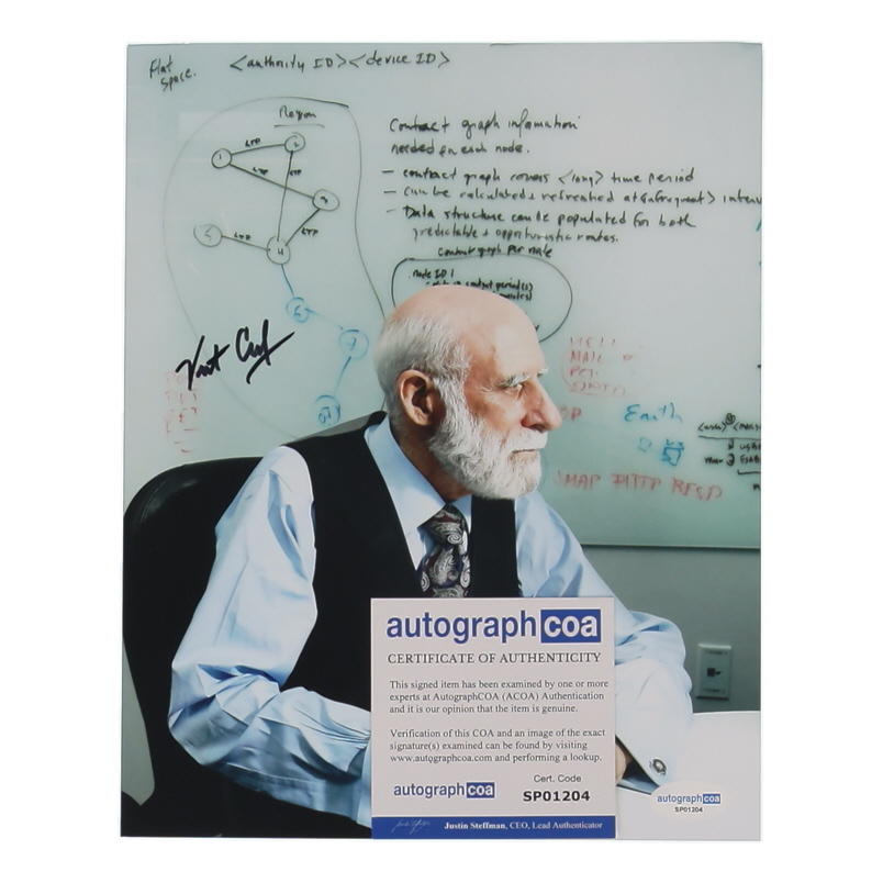 Photo measures 8" x 10" in size. Hand-signed by Vint Cerf.