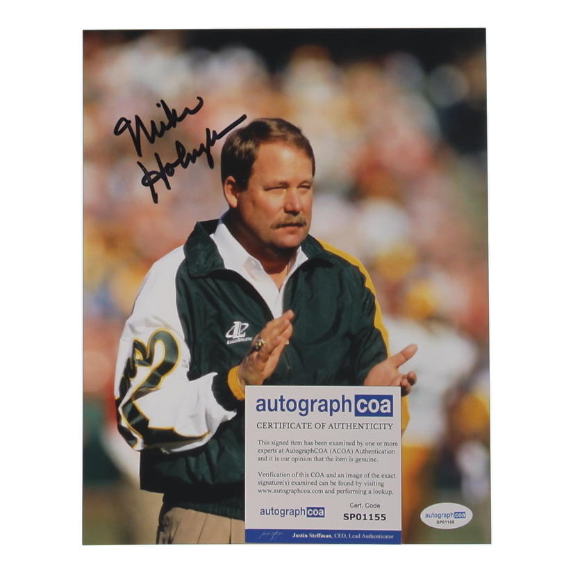 Photo measures 8” x 10” in size and has been hand-signed by Mike Holmgren (Green Bay Packers).
