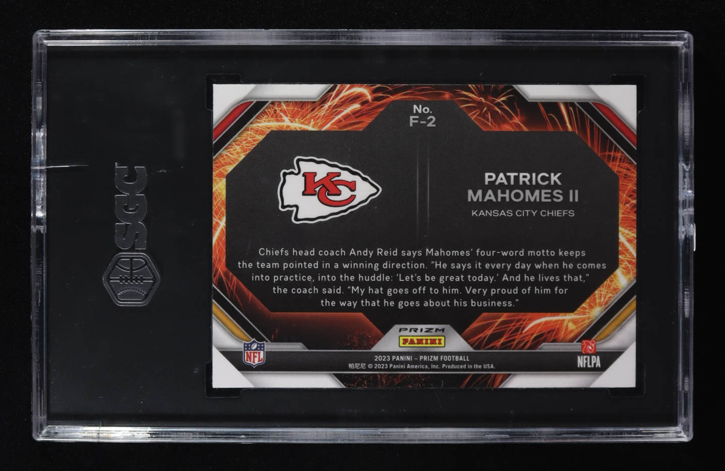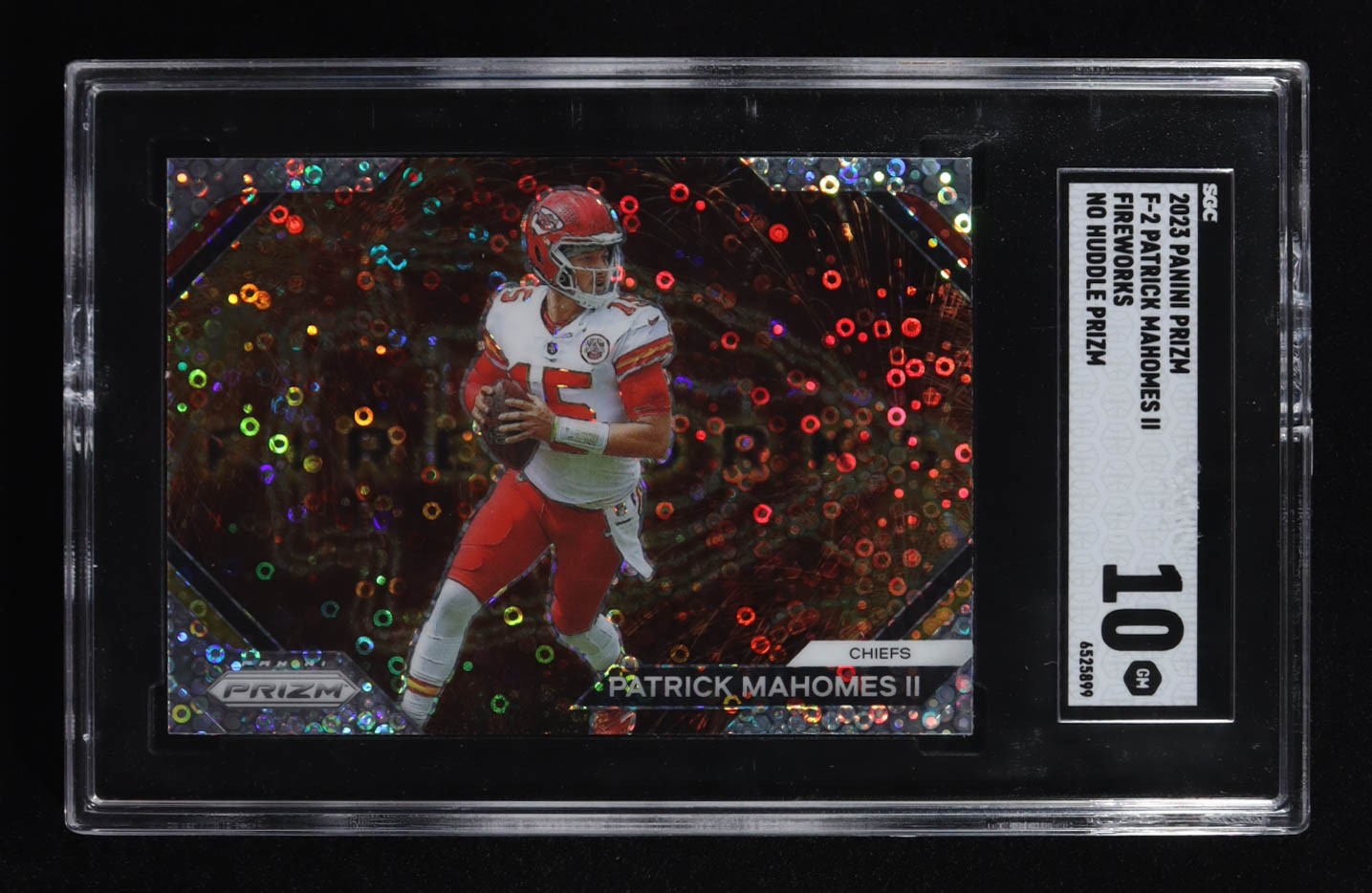 Patrick Mahomes II 2023 Panini Prizm Fireworks Prizms No Huddle #2 (SGC 10)