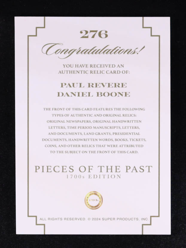 Paul Revere / Daniel Boone 2024 Pieces of the Past 1700s Edition Dual Relics Holo #276