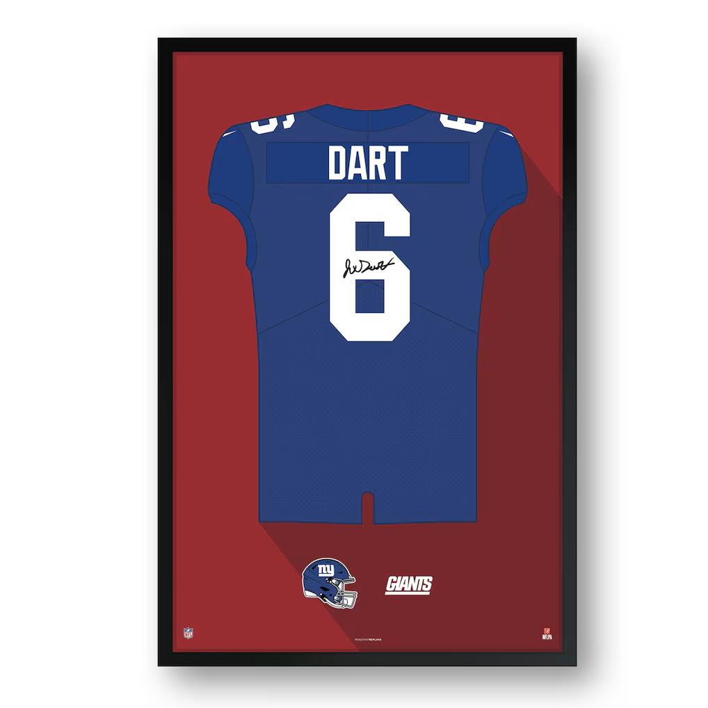 Jaxson Dart Giants Custom Framed Jersey Art Print