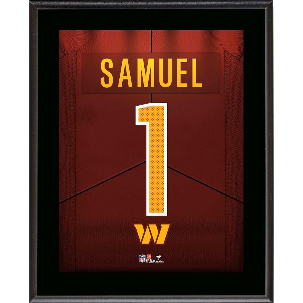 Sublimated player plaque measures 10" x 13" in size and features the jersey number for Deebo Samuel Sr. (Washington Commanders).