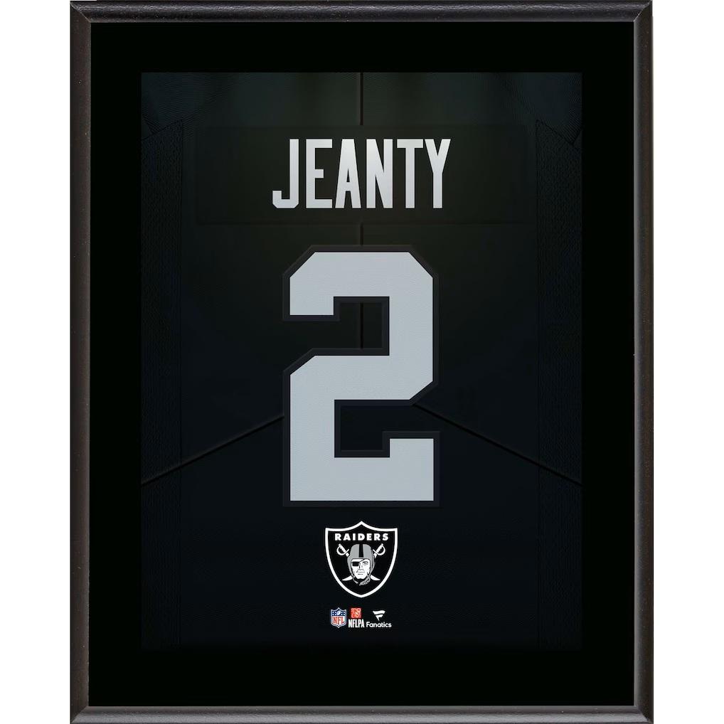 Sublimated player plaque measures 10" x 13" in size and features the jersey number for Ashton Jeanty (Las Vegas Raiders).