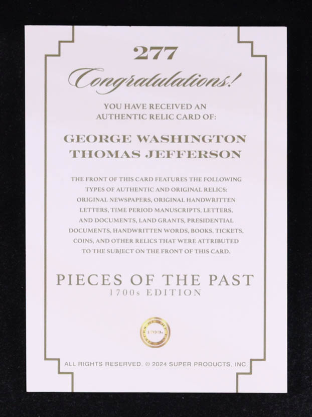 George Washington / Thomas Jefferson 2024 Keepsake 1700s Edition Dual Relics Silver #277