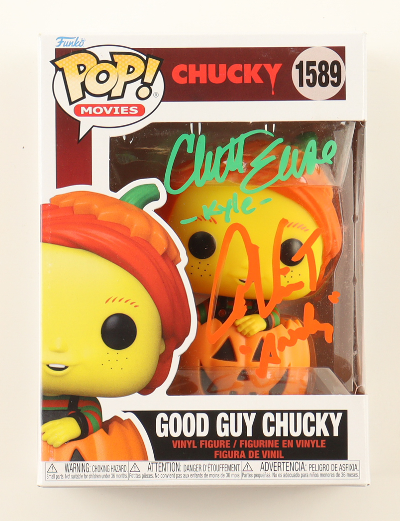 Christine Elise & Alex Vincent Signed "Chucky" #1589 Good Guy Chucky Funko Pop! Vinyl Figure Inscribed "Kyle" & "Andy" (JSA)
