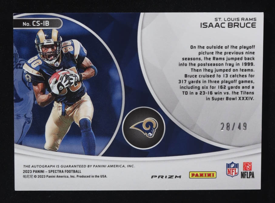 Isaac Bruce 2023 Panini Spectra Champion Signature Prizm Auto #CS-IB #28/49