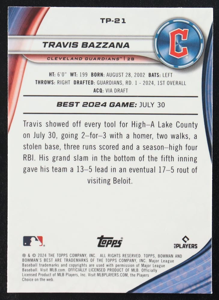 Travis Bazzana 2024 Bowman's Best Top Prospects Mini-Diamond Refractors #TP21 RC #208/299