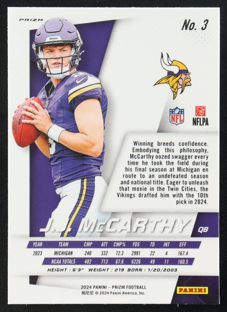 JJ McCarthy 2024 Panini Prizm Flashback Silver #3 RC