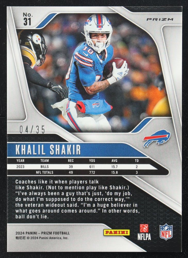 Khalil Shakir 2024 Panini Prizm Prizms Red Shimmer #31 #4/35
