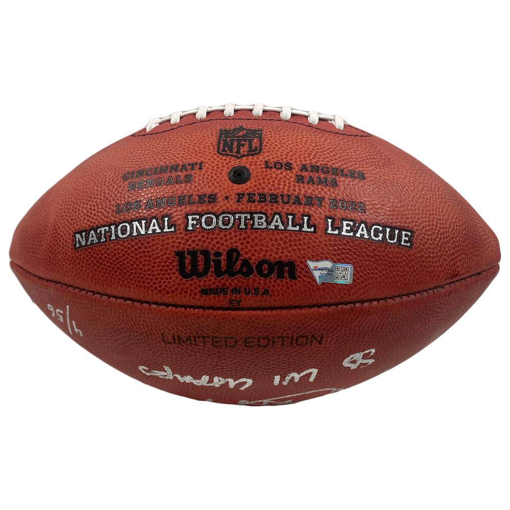 Wilson "The Duke" Rams Super Bowl Champions Official Game football has been hand-signed and inscribed by Matthew Stafford (Los Angeles Rams). This football is limited to just 56 and you will receive a random number from the edition.
