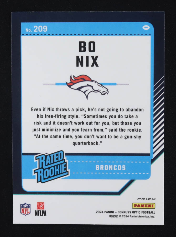 Bo Nix 2024 Panini Donruss Optic Prizm Blue Hyper Rated Rookie #209 RC