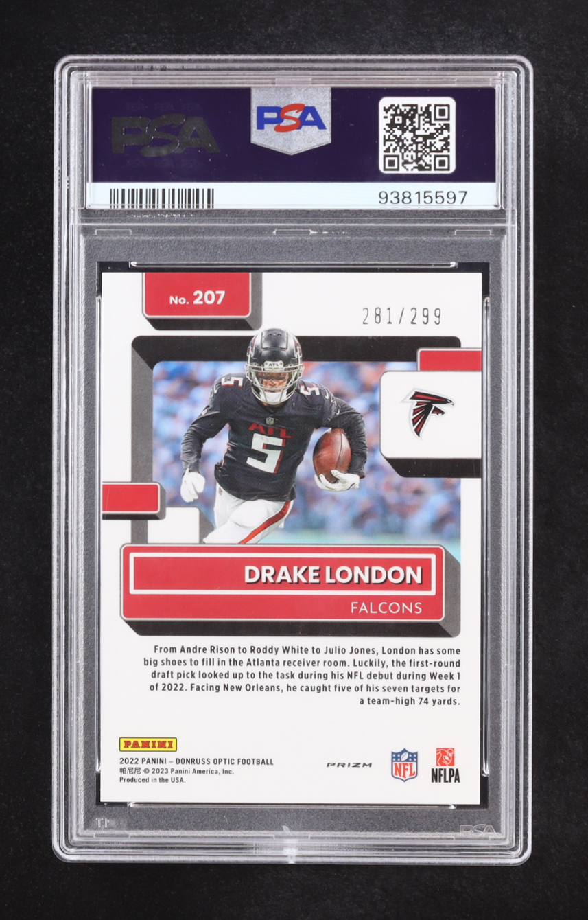 Drake London 2022 Donruss Optic Aqua RR #207 RC #281/299 (PSA 9)