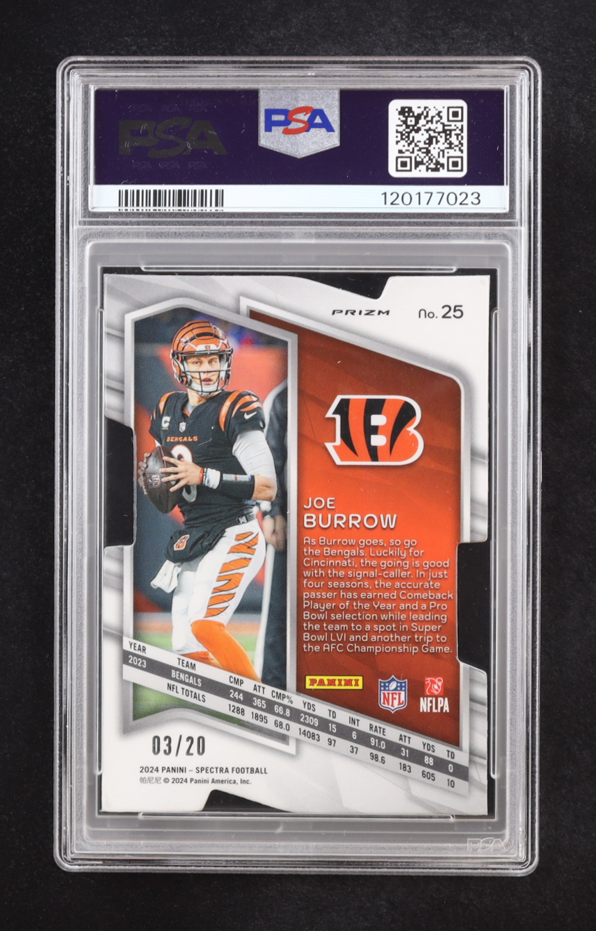 Joe Burrow 2024 Spectra Neon Pink Die-Cut Prizm #25 RC #03/20 (PSA 9)