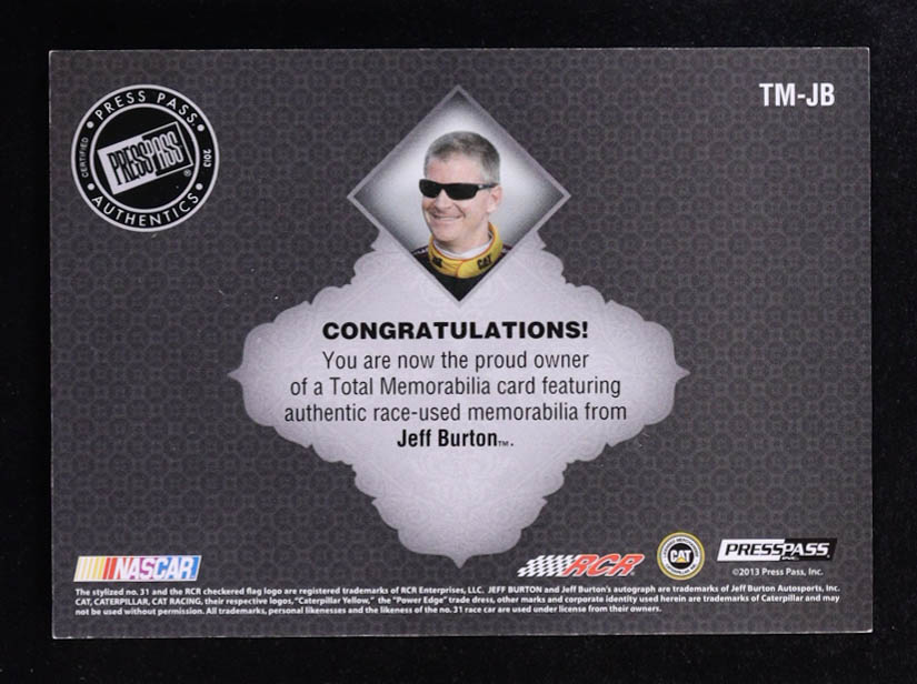 Jeff Burton 2013 Total Memorabilia Single Swatch Silver #TMJB