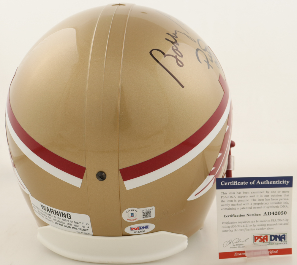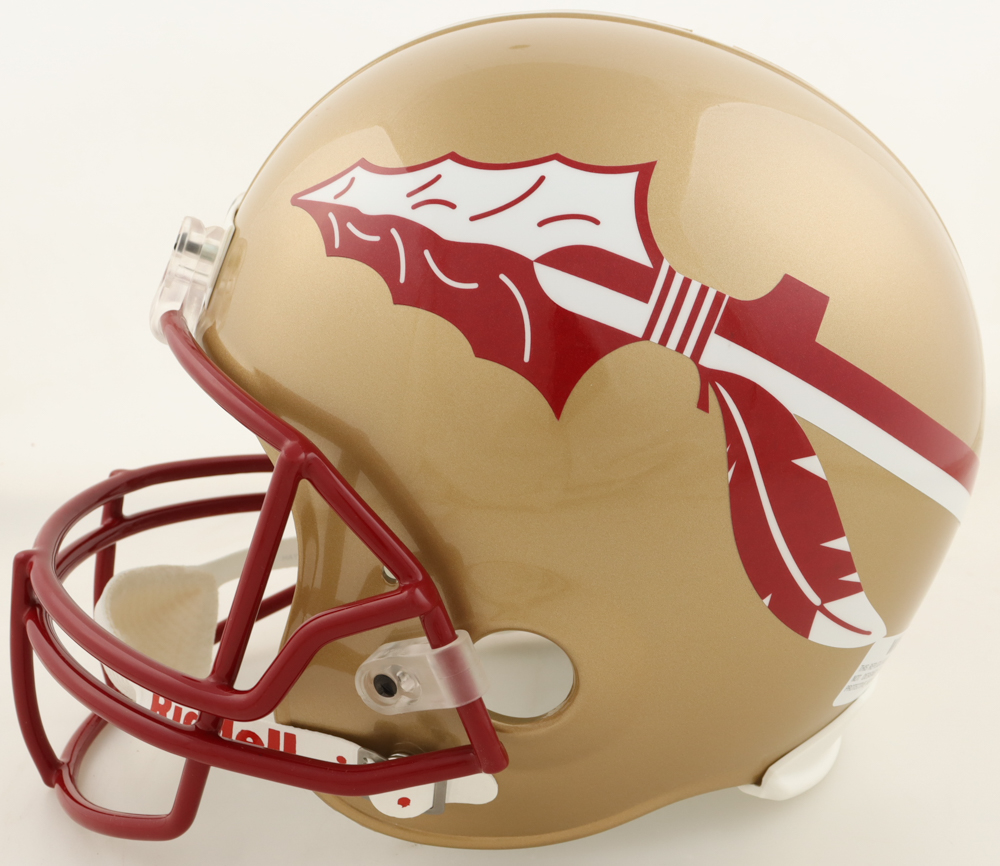 Riddell Florida State Seminoles full-size replica helmet. Hand-signed and inscribed by Bobby Bowden (D. 2021), Peter Warrick, and Chris Weinke.