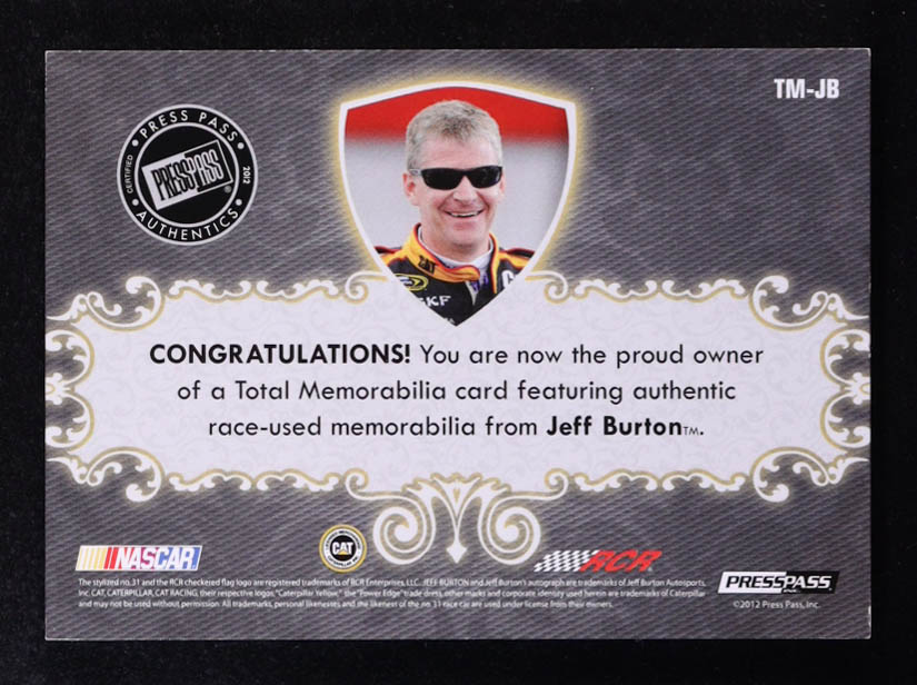 Jeff Burton 2012 Total Memorabilia Single Swatch Silver #TMJB #192/199